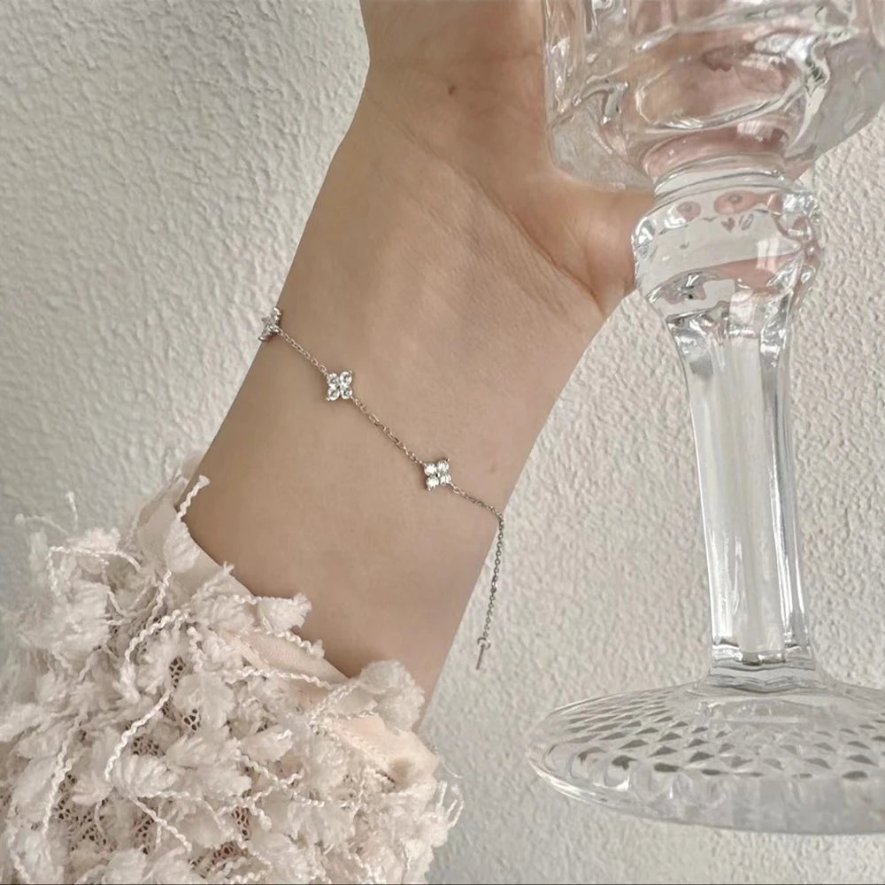 New Stainless Steel Zircon Necklaces for Women 18K Gold Plated Four Leaf Grass Collar Chain Necklace Luxury Jewelry Gift